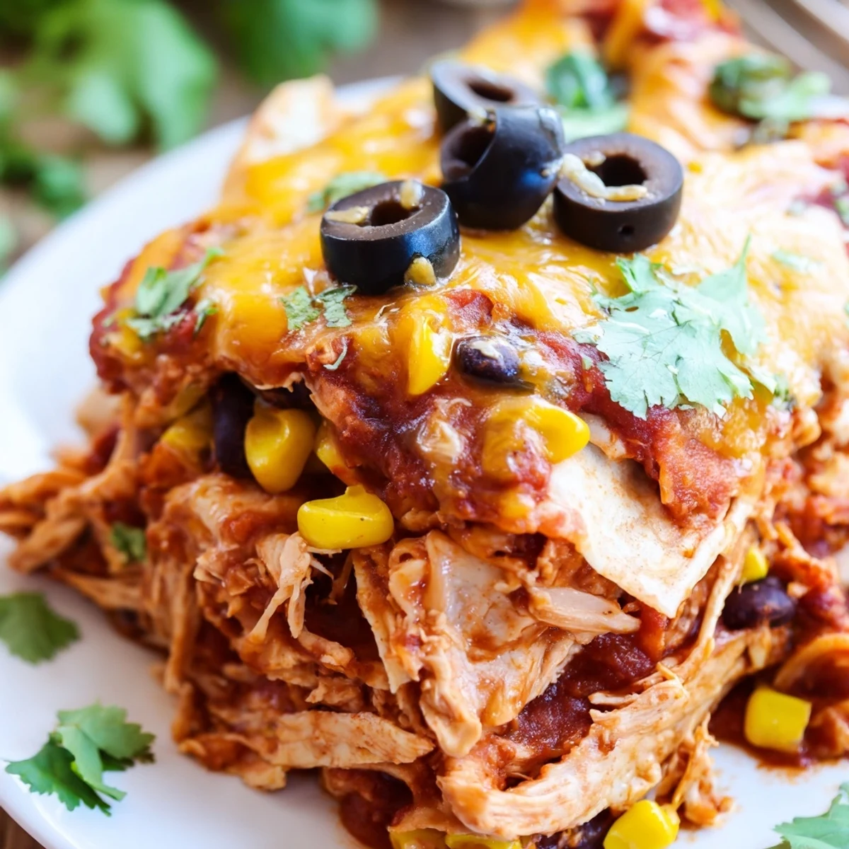 This satisfying Tex-Mex casserole brings together layers of tender shredded chicken, black beans, sweet corn, and aromatic spices, all nestled between soft tortillas and smothered in rich enchilada sauce. The crowning glory is a generous blanket of shredded Mexican cheese that becomes irresistibly bubbly and golden in the oven.