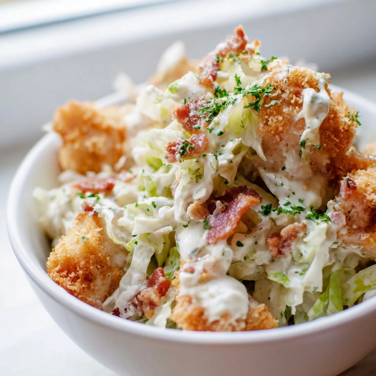 The smell of bacon sizzling on a Tuesday evening still pulls me back to my first apartment kitchen, where I discovered that cabbage could actually be exciting. I'd been stuck in a salad rut until a friend suggested throwing everything in one pan with ranch sauce. Now this bowl has become my go-to when I want something that feels indulgent but doesn't leave me weighed down.